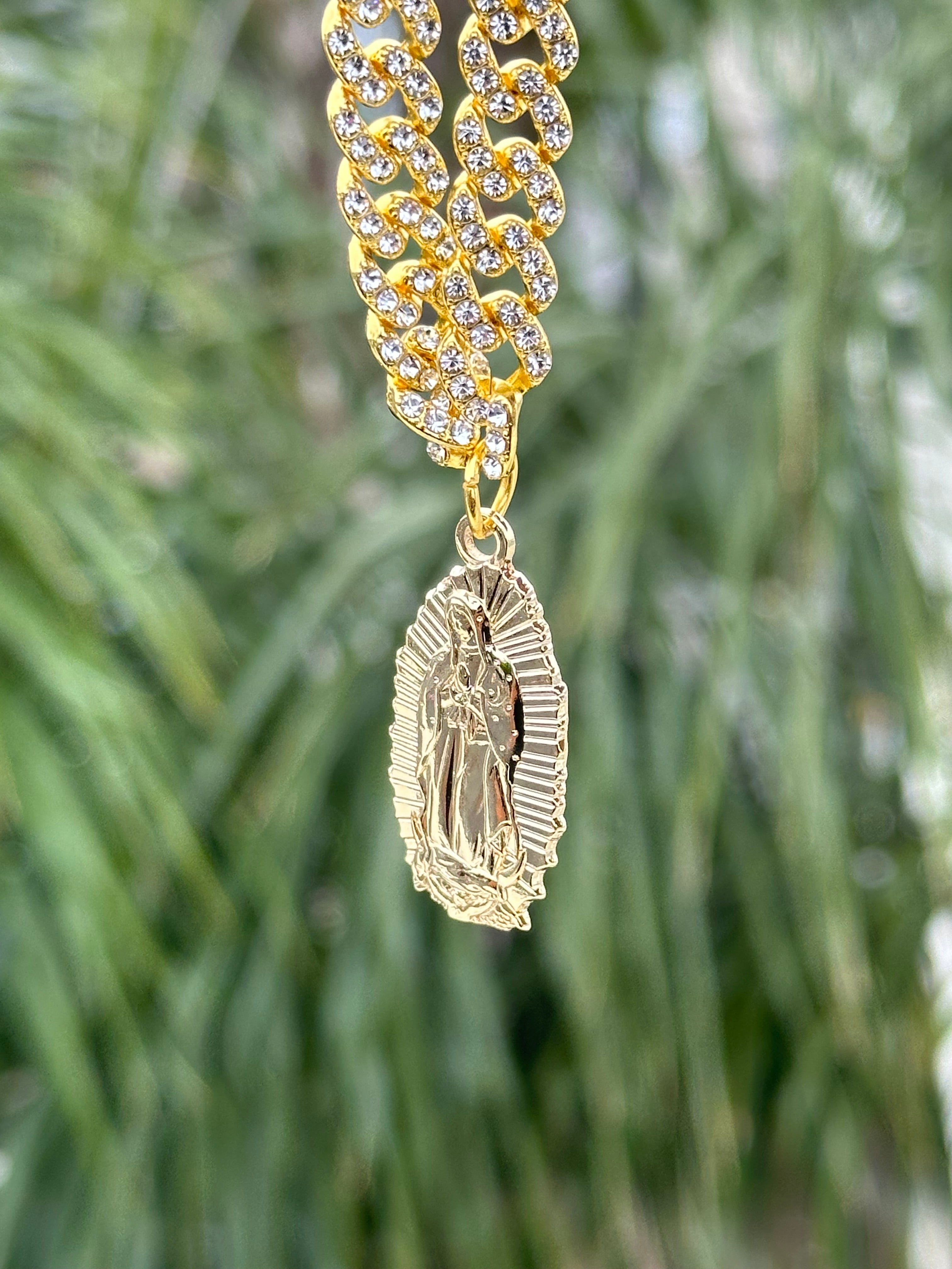 *NEW GOLD "VIRGEN DE GUADALUPE" ICED OUT CHAIN VERY LIMITED