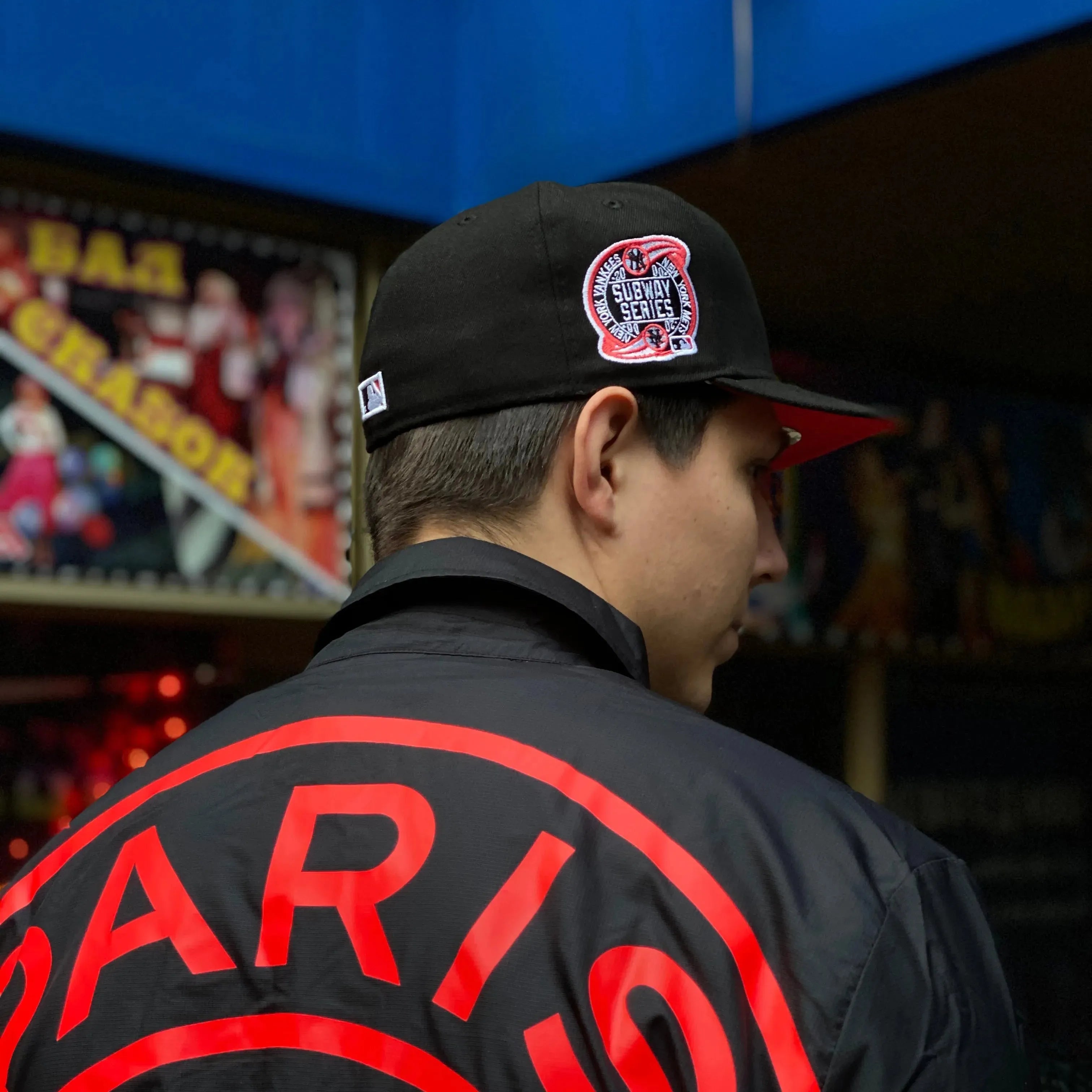 NEW ERA 59FIFTY MLB NEW YORK YANKEES SUBWAY SERIES 2000 BLACK / LAVA UV FITTED CAP THE SOUTH CAP