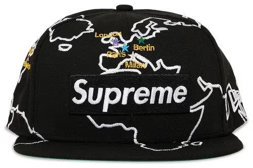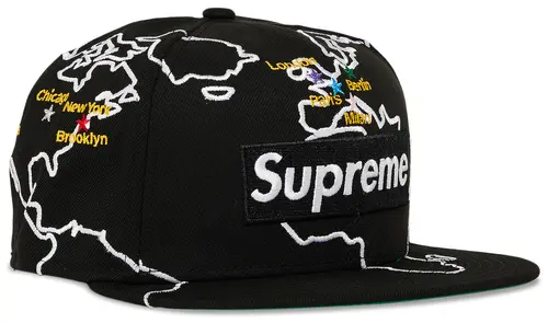 NEW ERA 59FIFTY SUPREME WORLDWIDE BOX LOGO NEW ERA BLACK CASUAL BASEBALL CAP THE SOUTH CAP