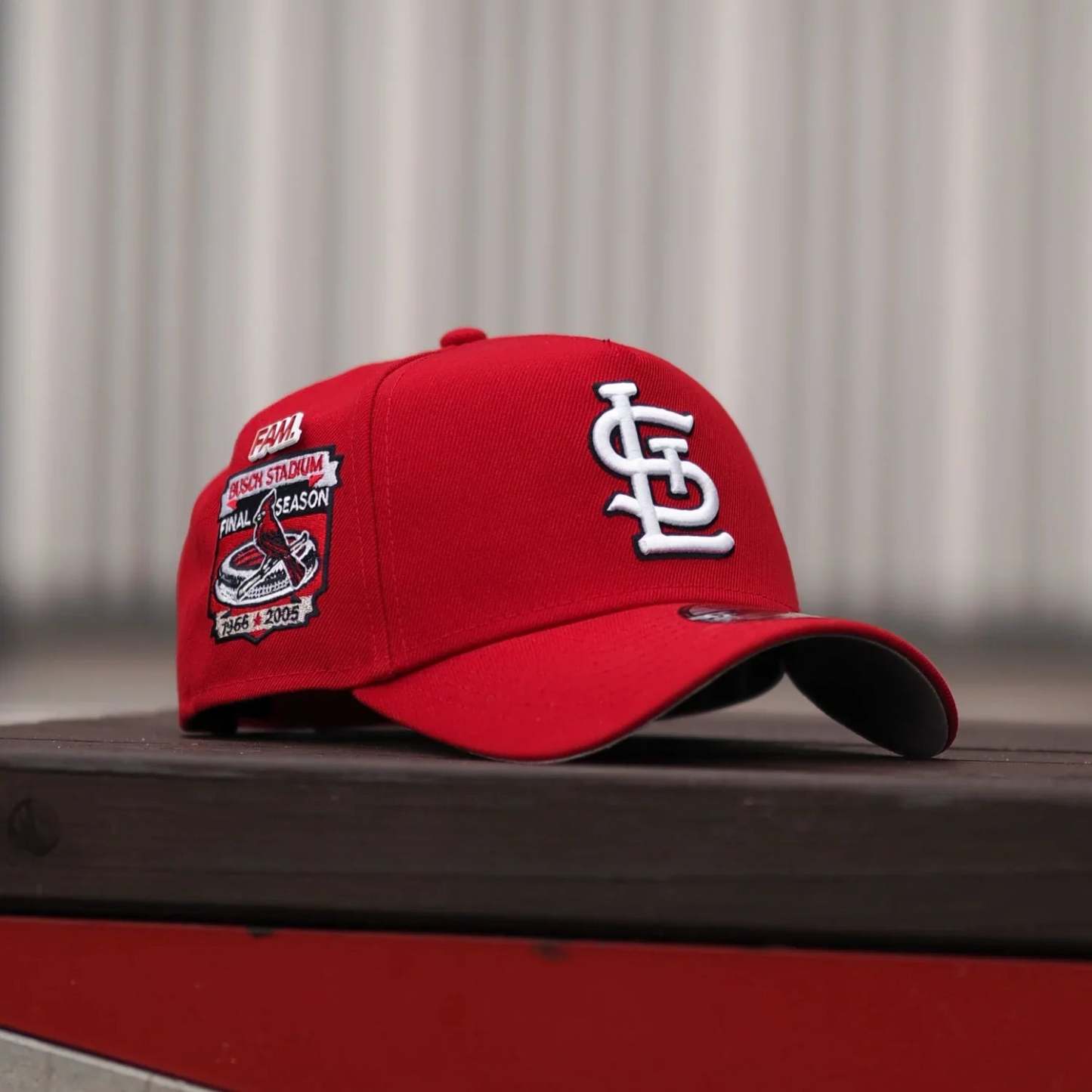 NEW ERA 9FORTY A-FRAME MLB ST. LOUIS CARDINALS BUSCH STADIUM SCARLET / GRAY UV SNAPBACK THE SOUTH CAP