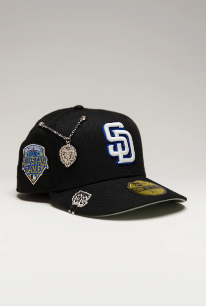 NEW ERA EXCLUSIVE 59FIFTY BLACK SAN DIEGO PADRES W/ ALL STAR GAME SIDE PATC THE SOUTH CAP